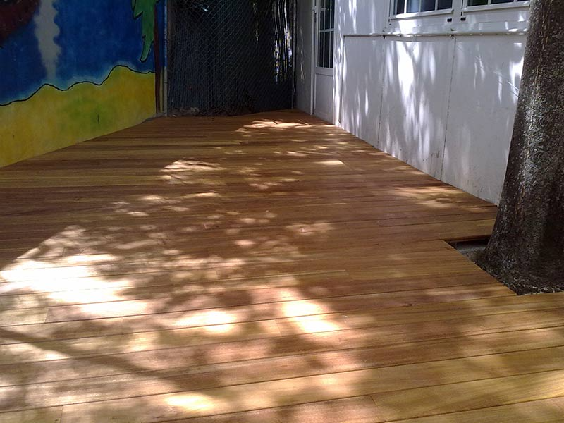Pavimento de madera maciza de especies tropicales que se adaptan a las condiciones de la intemperie y de interiores con humedad ambiental, tales como baños, spas y piscinas cubiertas.